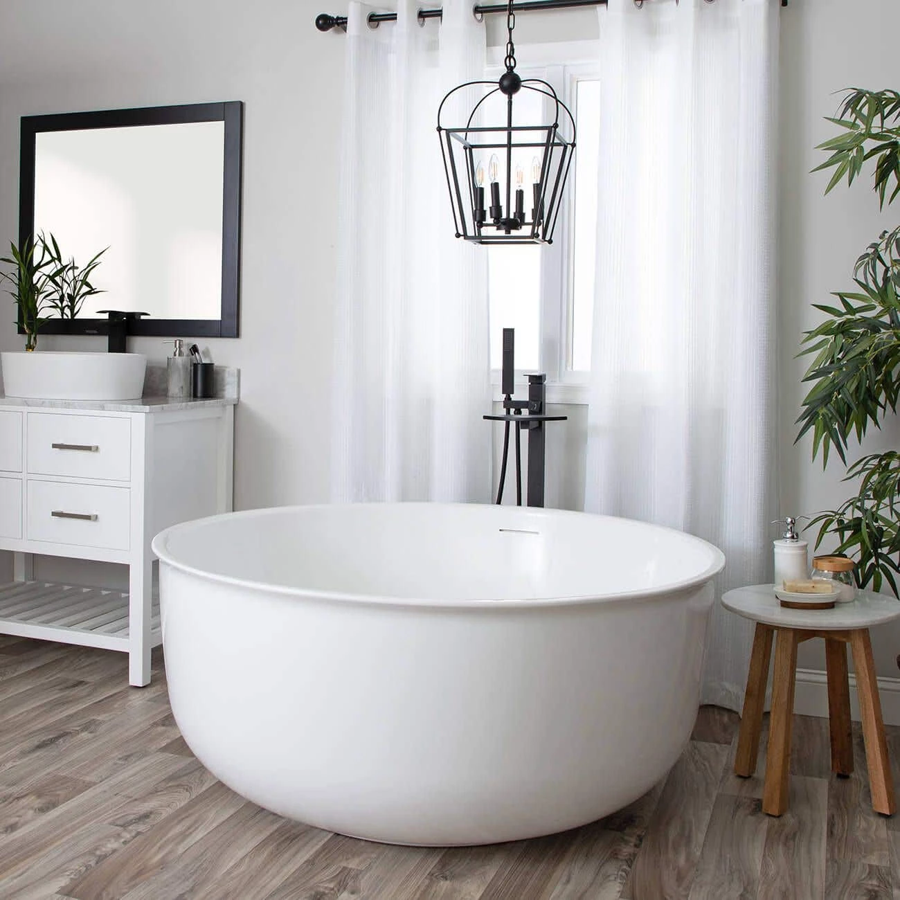 Treat yourself to ultimate style and luxury in a Randolph Morris 53-inch soaking bathtub. This large Japanese soaking tub has a high-gloss finish that makes it resistant to dulling, scratching, and fading. It has a unique round tub shape that adds an element of flair and character to any bathroom.