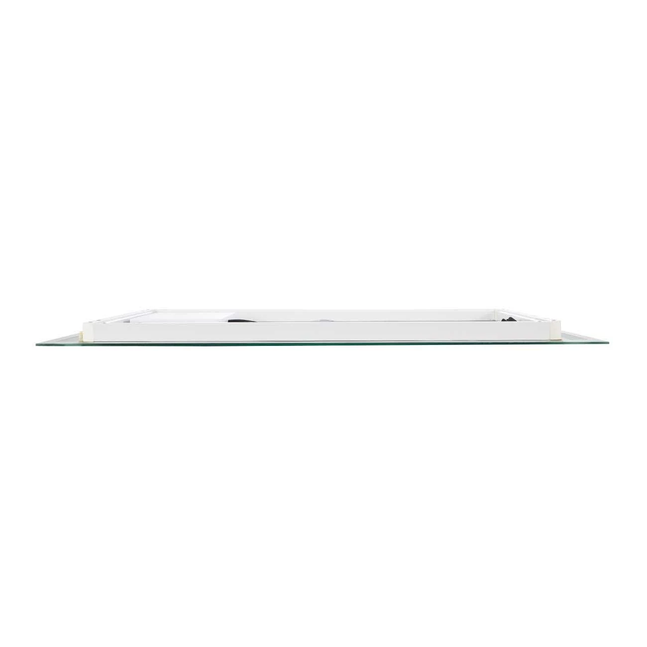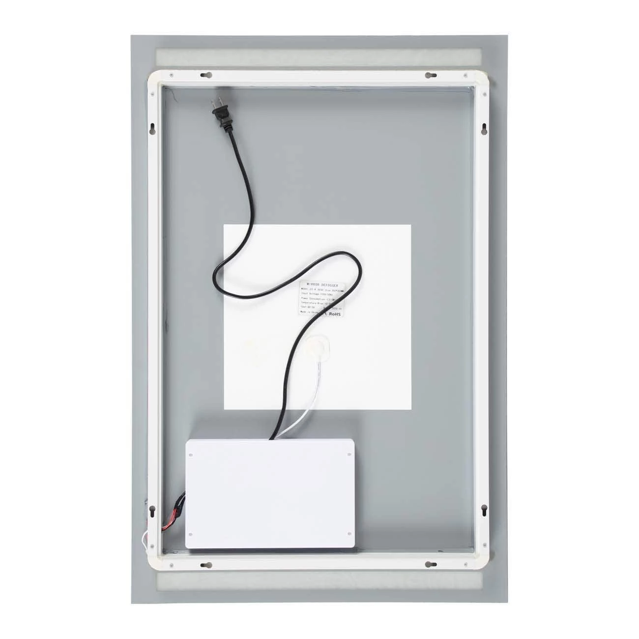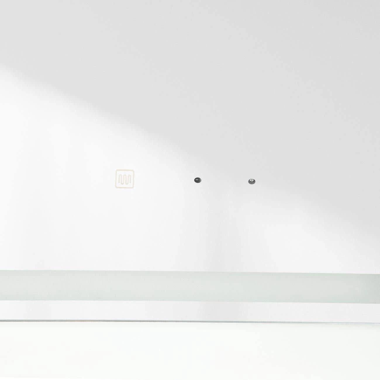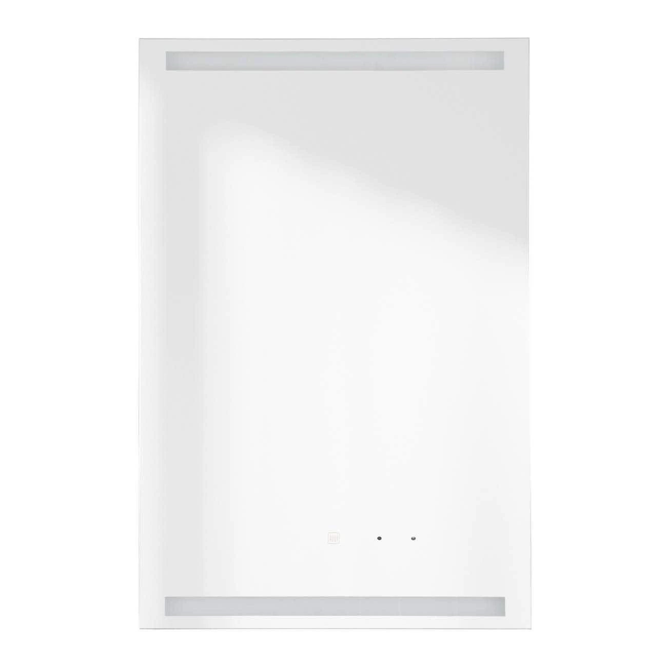 - Features vertical LED lighting along the top and bottom of the mirror