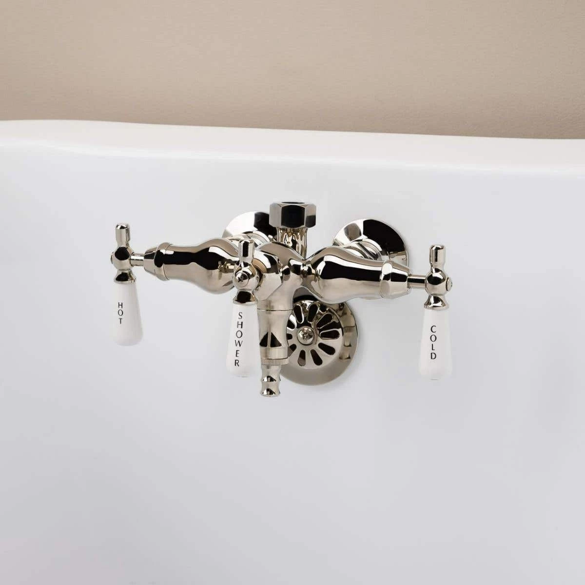 Clawfoot Tub Wall Mount Downspout Faucet With Porcelain Lever Handles For Riser Connection