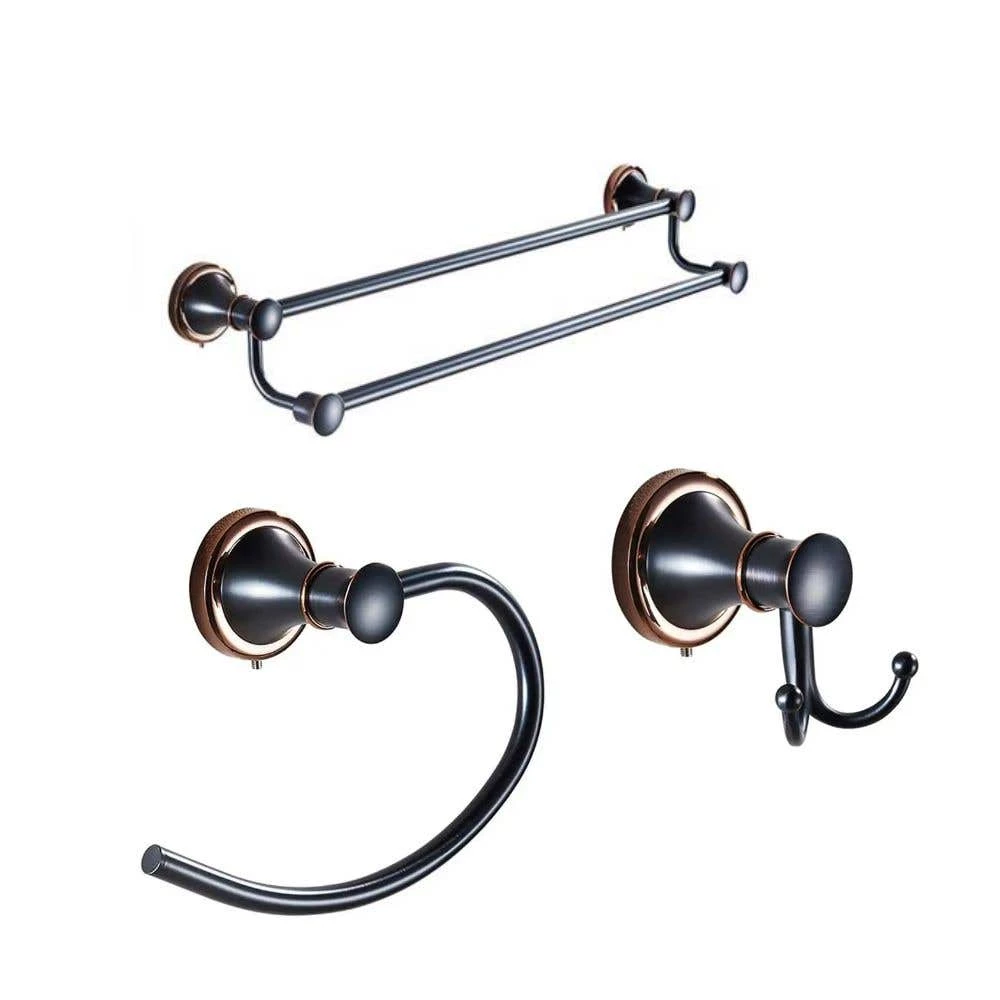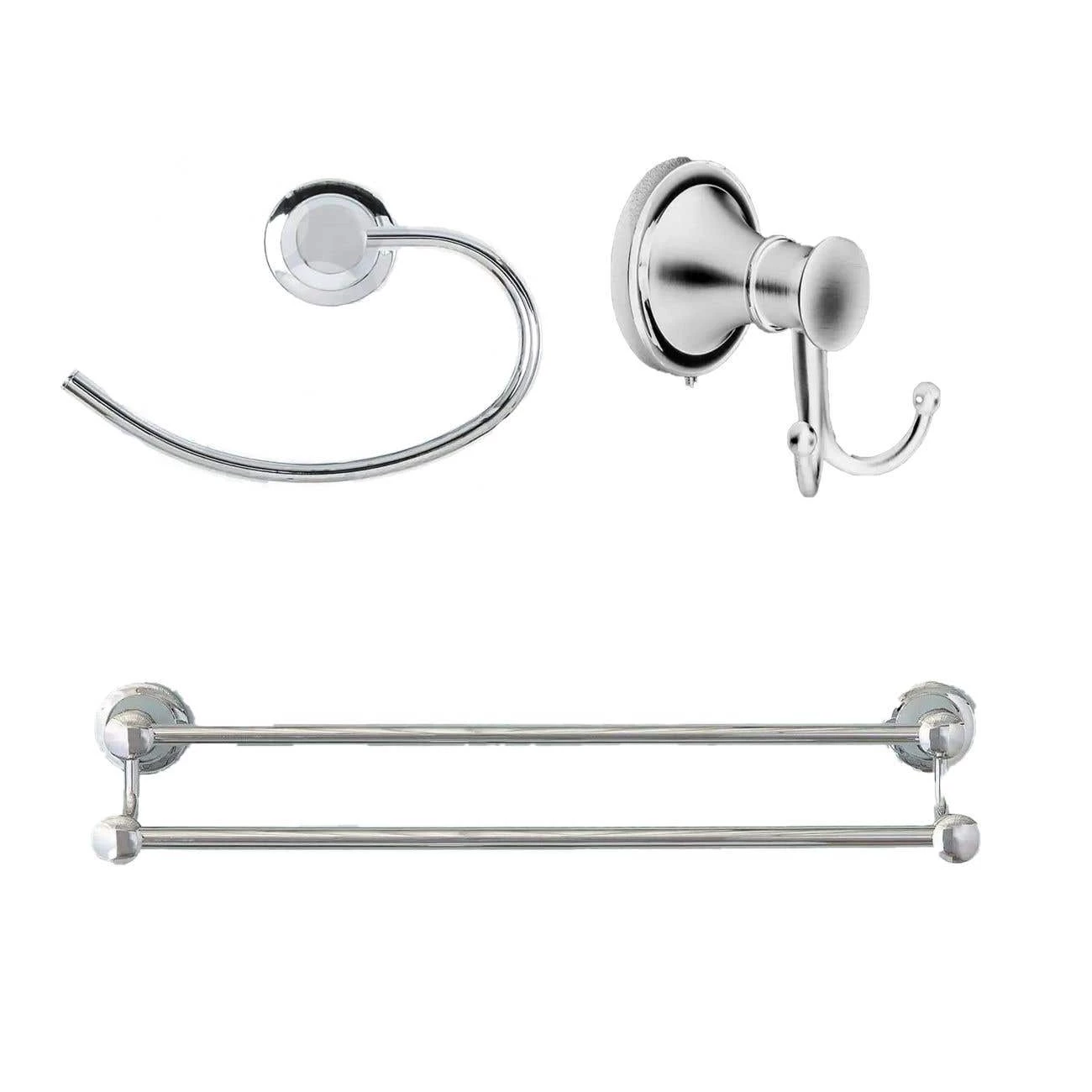 - Set includes: 24″ Double Towel Bar, Towel Ring, and Robe Hook