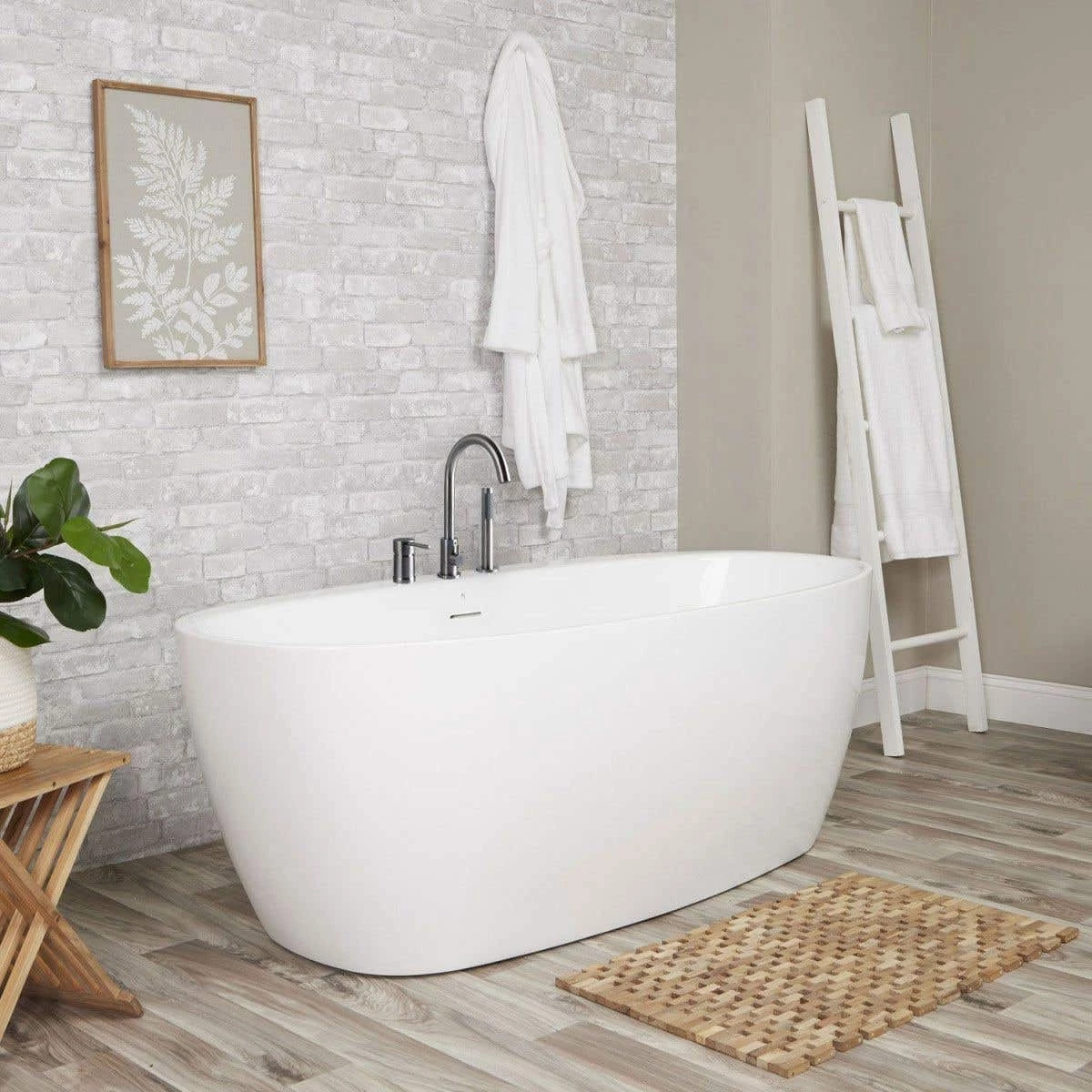 The Luna Acrylic Freestanding Tub Package is the perfect blend of style and comfort. Each bathtub packages comes with a modern roman bathtub faucet with a hand shower. The faucet features an elegant brass gooseneck faucet with a single lever handle. Complete your bathroom with the Luna Freestanding Bathtub.