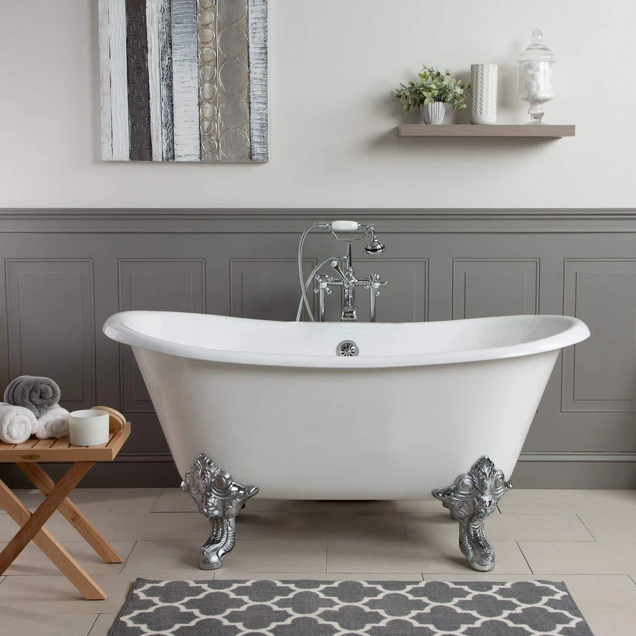 Experience the perfect blend of elegance and comfort with the Monarch Clawfoot Cast Iron Tub. Expertly crafted with premium A-class porcelain over cast iron, this double slipper clawfoot tub provides timeless style and modern convenience. Beautiful vintage details like monarch claw feet add a touch of nostalgia, while the contoured bathtub rim is designed for ultimate relaxation. Cast iron clawfoot bathtubs give an instant upgrade to your bath, but there is no other like the Monarch Clawfoot Bathtub.