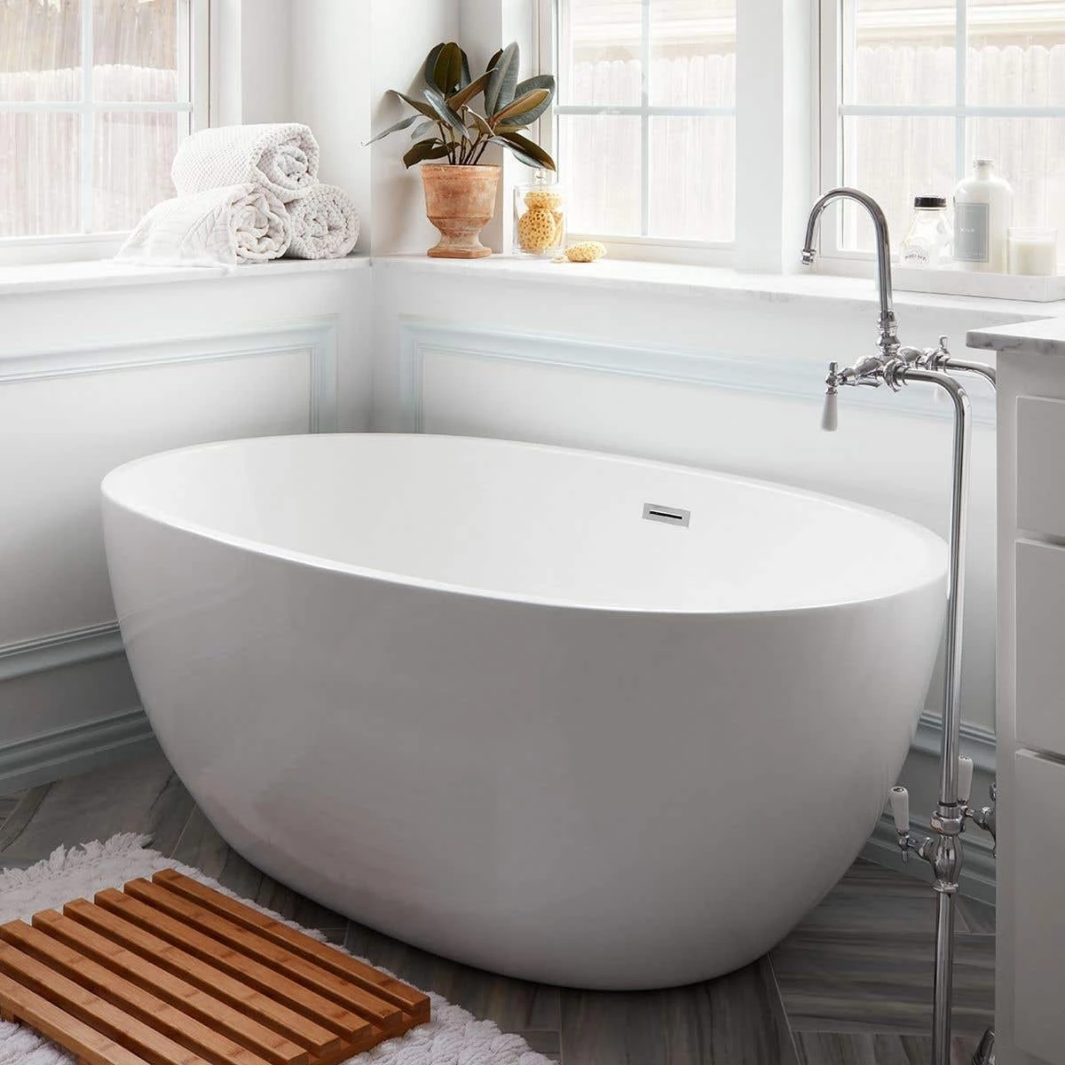 Comfortable and sleek, the Noah Double Ended Tub boasts clean lines, bringing a modern and polished look at any master bathroom. The double-ended design is perfect for reclining and relaxing. This deep, freestanding tub pairs well with a contemporary tub faucet.