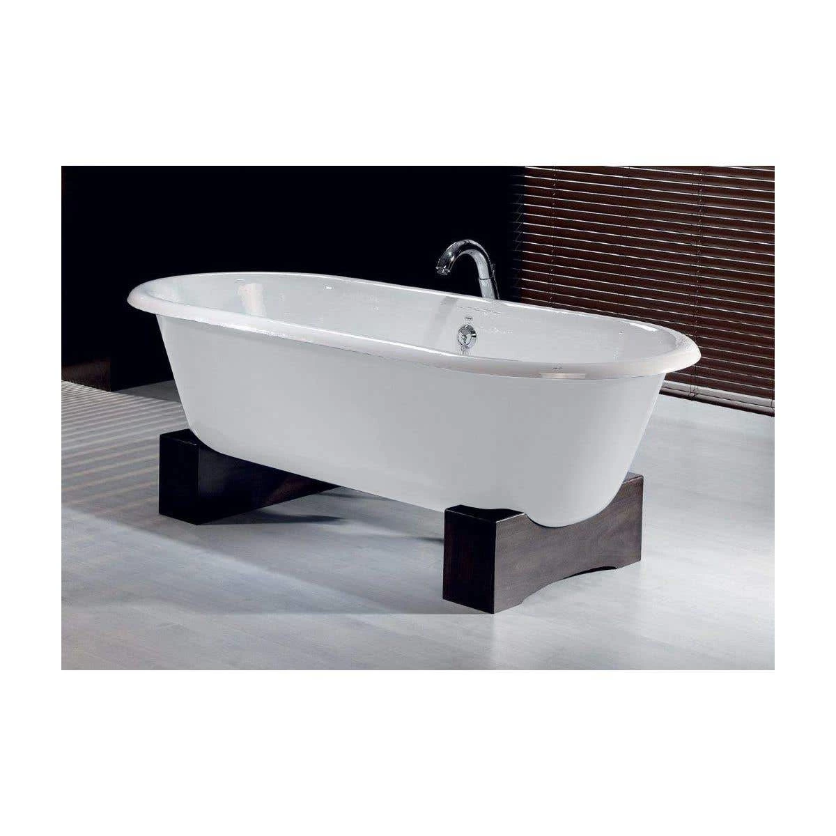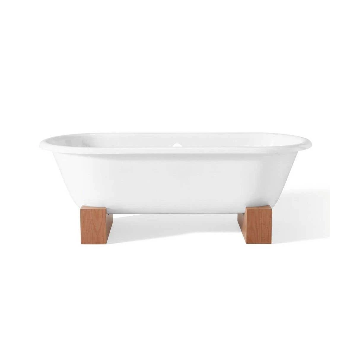 This regal clawfoot tub from Randolph Morris combines heavy-duty cast iron construction with elegant design to create a truly unique space for bathing and relaxing. Boasting a continuous rolling bathtub rim and clawfoot tub wood base, this freestanding tub adds a touch of warmth and modernity to your bathroom space.